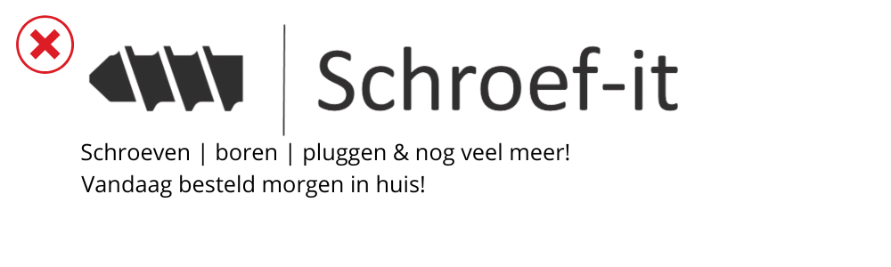 Goed: Een eenvoudig beeldmerk naast een grote, dikke tekst in zwart.